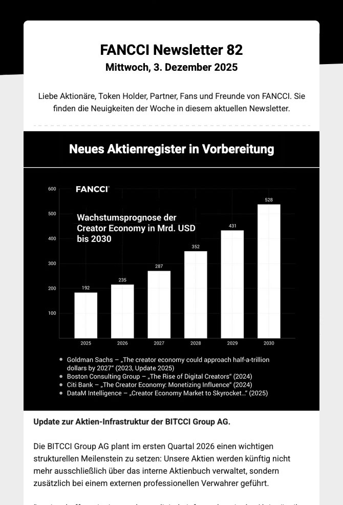 We are building the FANCCI platform – a dynamic, viral ecosystem of co-owners. FANCCI merges adult entertainment with share ownership and redefines visibility, value, and community in the digital age.
